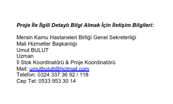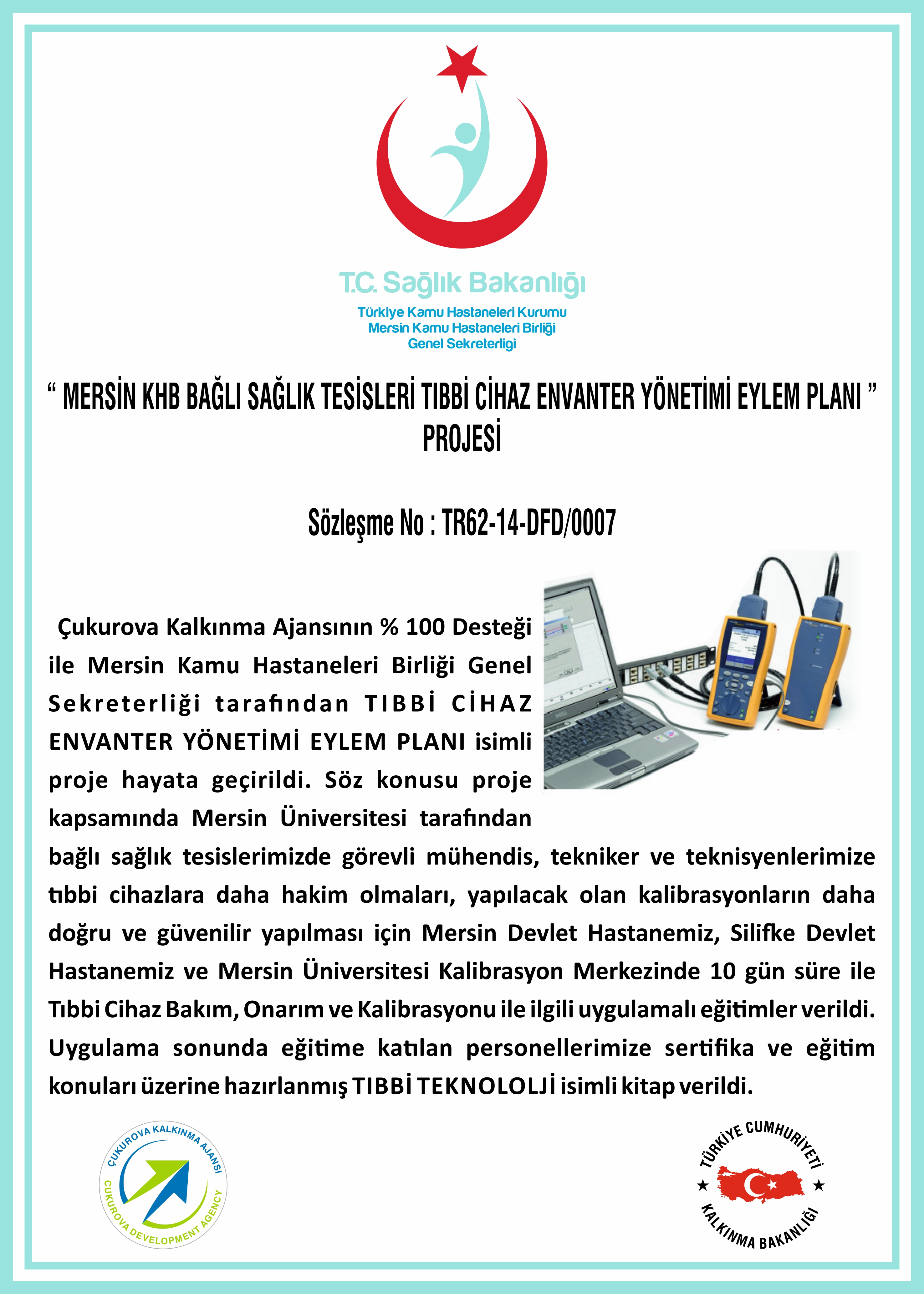 Mersin Kamu Hastaneleri Birliği Genel Sekreterliği’nin Çukurova Kalkınma Ajansı 2014 yılı Doğrudan Faaliyet Destek Programı kapsamında ”Tıbbi Cihaz Envanter Yönetimi Eylem Planı” Projesi kabul edilmiştir.