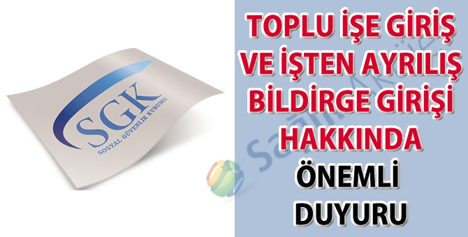 (4/a) sigortalısı çalıştıran işverenlerin farklı programlar kullanmaları nedeniyle oluşacak sistemsel hatalardan Kurumun herhangi bir sorumluluğu bulunmamakta olup, sigortalılara ilişkin toplu işe giriş ve işten ayrılış işlemlerini “Toplu işe giriş ve ayrılış bildirge girişi” menüsü aracılığıyla yapmaları önemle duyurulur.
