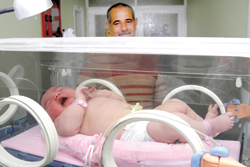 Adana’da 38 yaşındaki Hatice Uğur, 10’uncu çocuğunu 7 kilo 100 gram olarak dünyaya getirdi. Diyabet hastası olduğu belirtilen Hatice Uğur’un sezaryenle dünyaya getirdiği 7 kilo 100 gram ağırlığındaki kız bebeği gören doktor ve hemşireler, şaşkınlıklarını gizleyemediler. “Tosun bebek” hemen kuvöze konularak bakıma alındı. Bebeğin ilk kontrolünü yapan Çocuk Hastalıkları Uzmanı Dr. Deniz Kaya, bebeğin annesinin diyabet hastası olduğunu belirterek, bunun sık görülen bir vaka olmadığını söyledi. Normal bebekler 3.5-4 kilogram arasında dünyaya gelirken, diyabet hastası bazı annelerin çocukları 6, 6-5 kilograma kadar çıkabiliyor.