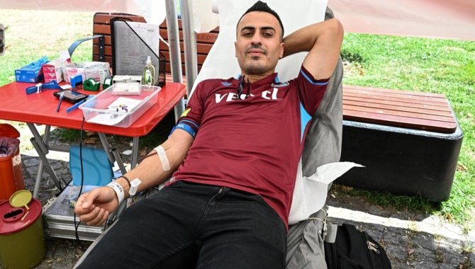 "Gurbetçi Gençler" taraftar grubu, Trabzonspor'un kuruluş yıl dönümü kapsamındaki "Trabzonspor için Bir Meşale de Sen Yak" etkinliğinde, sıcak havanın etkisiyle kan bağışında yaşanan düşüşün önüne geçmek için harekete geçti.