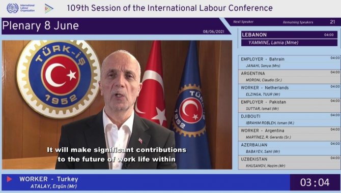 Kovid-19 salgını nedeniyle geçen yıl ertelenen Uluslararası Çalışma Örgütünün (ILO) 109. Uluslararası Çalışma Konferansı, çevrim içi olarak "Kovid-19 ve İnsan Odaklı İyileşme" gündemiyle toplandı.