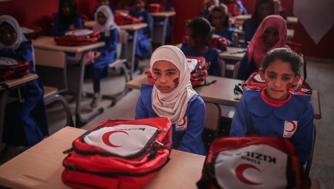 "Ayrıca bu kamplardaki okul ve dersliklerde eğitim öğretim hizmeti verilerek eğitim çağındaki çocukların yararlanması sağlanmaktadır. Kamplar içerisinde ibadetlerini gerçekleştirilebilecekleri camiler bulunmakta ve yine bu kamplar içerisindeki sağlık merkezlerinde sağlık taramaları ve temel sağlık hizmetleri sağlanmaktadır. Ayrıca çocuk oyun parkları, su ihtiyacının karşılanabilmesi için su kuyusu ve su kulesi kamp ve yetimhaneler içerisinde mevcuttur. 2011 yılından günümüze Türk Kızılay öz kaynaklarınca temin edilen ve kurumumuza bağışlanarak Suriye içerisine sevkiyatının yapıldığı 8 milyon 360 bin 325 gıda kolisi ve 2 milyon 848 bin 287 hijyen seti ihtiyaç sahiplerine ulaştırılmıştır."