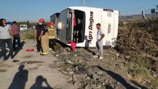 Alınan bilgiye göre, Ağrı'dan İzmir'e giden K.G. (58) idaresindeki Ağrı Doğuş firmasına ait 34 HE 1858 plakalı yolcu otobüsü Ankara-Uşak kara yolunun Göğem kavşağı yakınlarında sürücüsünün direksiyon hakimiyetini kaybetmesi sonucu şarampole devrildi.