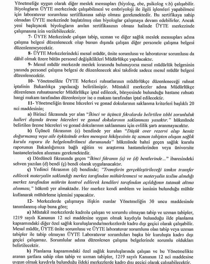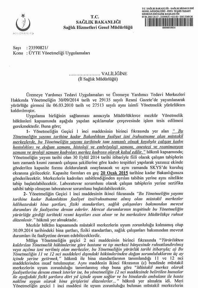Sağlık Bakanlığı Sağlık Hizmetleri Genel Müdürlüğü tarafından Üremeye Yardımcı Tedavi Uygulamaları ve Üremeye Yardımcı Tedavi Merkezleri Hakkında Yönetmelik (ÜYTE Yönetmeliği) uygulamaları hakkında duyuru yayımlandı.