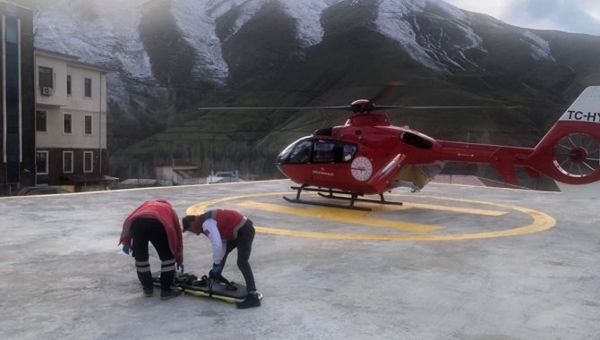 Bunun üzerine ilçeye yönlendirilen ambulans helikoptere alınan hasta, Van Bölge Eğitim Araştırma Hastanesi'ne kaldırıldı.