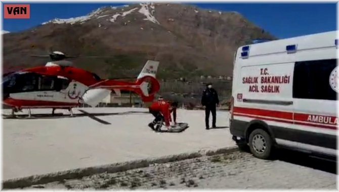 Bunun üzerine Van'dan kalkan ambulans helikopter, zorlu doğa şartlarına rağmen ilçe merkezine indi.