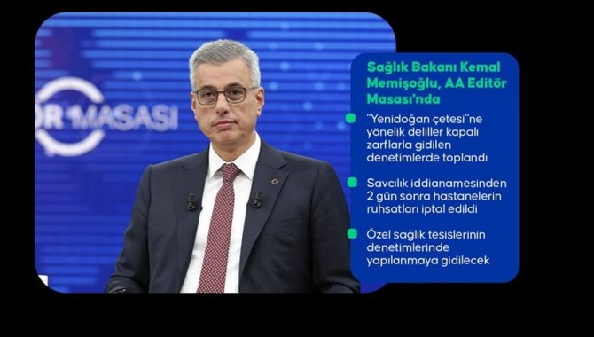 EDİTÖR MASASI 1 - "Yenidoğan çetesi"ne yönelik deliller kapalı zarflarla gidilen denetimlerde toplandıSağlık Bakanı Kemal Memişoğlu, Yenidoğan çetesi soruşturması kapsamında adı geçen hastanelere, 25 Eylül'de, anlık olağanüstü bir denetim yaptıklarını belirterek, dosyadaki delillerin birçoğunun bu aşamada elde edildiğini bildirdi.22 Ekim 2024 Salı 11:38BASIN HABERLERİ