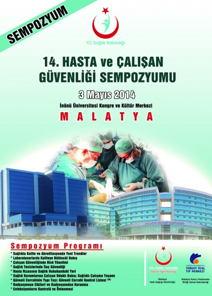 Ülke genelinde sağlık kurum ve kuruluşlarında hasta ve çalışan güvenliğinin sağlanması ve güvenlik kültürünün oluşturulması amacıyla düzenlenen Hasta ve Çalışan Güvenliği Sempozyumlarının 14. sü 03 Mayıs 2014 tarihinde Malatya İlinde gerçekleştirilecektir.