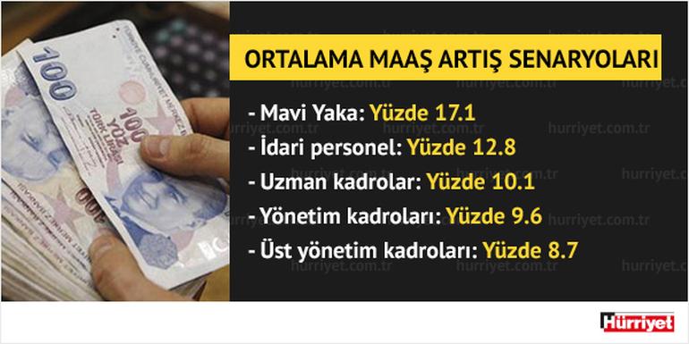Hay Group Türkiye tarafından eylül ayında açıklanan bir araştırma sonucuna göre, şirketlerin çalışanlarına ortalama yüzde 9 zam yapacağı belirtilmişti. Kasım sonrasında şirketlerin olası asgari ücret değişikliğiyle ilgili ek çalışmalara başladığı görüldü. Alternatif bütçe çalışan şirketlerin yeni bütçelerinde eskisine oranla ortalama yüzde 3'lük bir artış yapacağı dikkati çekiyor. 'Mavi yaka' kadroların revize bütçe rakamında öncekine göre yüzde 7.3'lük bir değişim görülüyor. Bu artışın zaman içerisinde kademeli olarak tüm çalışan gruplarını etkilemesi bekleniyor.
