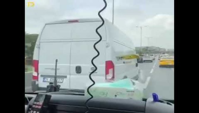 Sağmalcılar Viyadüğü'nde siren çalarak seyir halindeki bir ambulans, önünde ilerleyen ve yol vermeyen kapalı kasa bir minibüsten kornaya basarak yol istedi.
