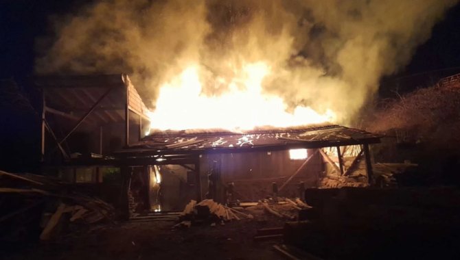 Güneybudaklar Mahallesi'ndeki tek katlı ahşap evde bilinmeyen nedenle yangın çıktı.
