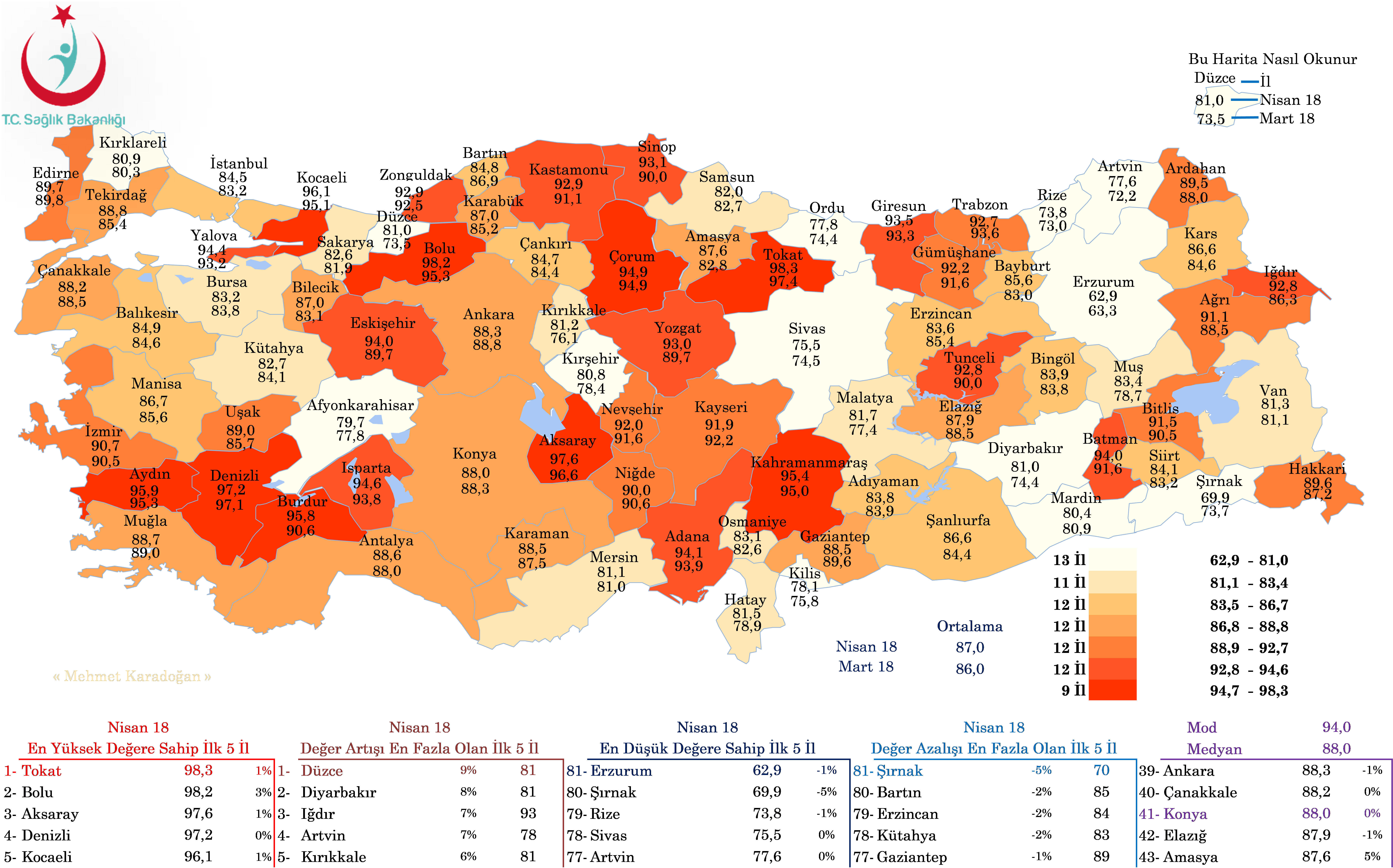 NİSAN 2018 İLLERE GÖRE E-REÇETE ORANLARI (KHGM)