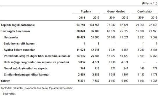 Türkiye İstatistik Kurumu (TÜİK) tarafından 2015 yılı Sağlık Harcamaları İstatistikleri yayımlandı.