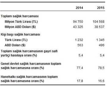 Sağlık harcamalarına ilişkin temel göstergeler, 2014-2015