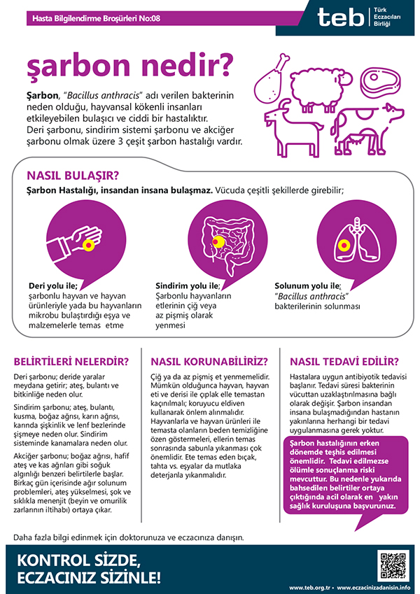 Türk Eczacıları Birliği (TEB) tarafından hazırlanan Şarbon hastalığı bilgilendirme broşürü yayımlandı..