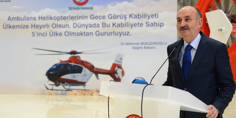 Müezzinoğlu, Gece Görüşlü Ambulans Helikopterleri TanıttıSağlık Bakanı Mehmet Müezzinoğlu, gece görüşlü ambulans helikopterleri ile 112 acil sağlık hizmetlerinin ve güncel sağlık konularının tanıtıldığı basın toplantısına katıldı.28 Nisan 2016 Perşembe 15:18SAĞLIK BAKANLIĞI