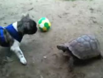 Kaplumbağalar arasında bir anda ortaya çıkan meydan okuma ve ardından çıkan kavgaya hakemlik etmek köpeğe düştü... İşte komik görüntüler...